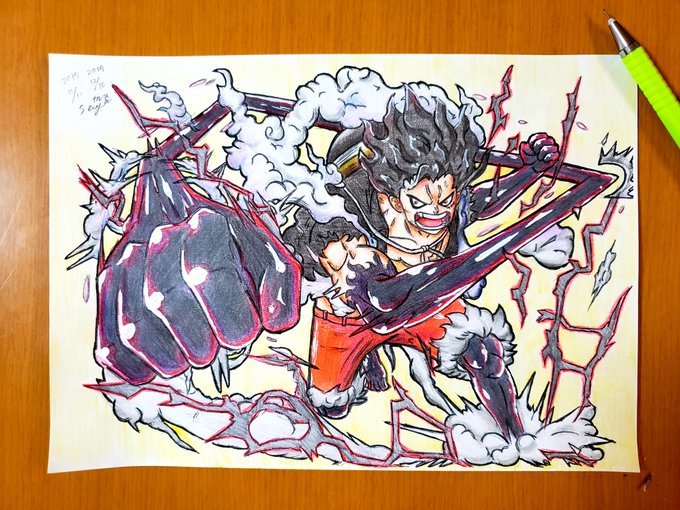 Ren Twitterren 28日目 ワンピースのルフィ ギア4スネイクマン 描きました 明日から仕事 イラスト コピック T Co Eb1libqwrb
